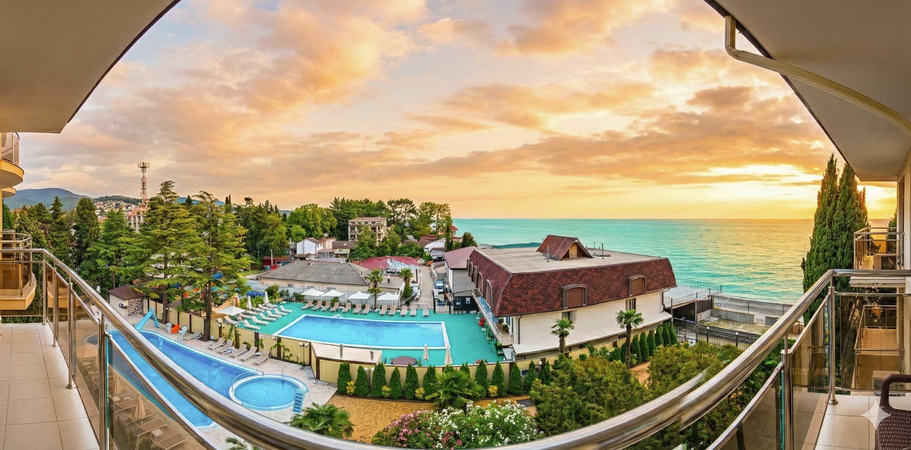 4х-местный «Люкс» двухкомнатный "Вид на Бассейн" с балконом 3 этаж (45 кв.м.) В каждом номере: - мебель (кровать двухместная, диван раскладной, прикроватные тумбочки, шкаф, тумба, трюмо, балконная мебель) - телевизор - кондиционер - холодильник - чайник + разовый набор при заезде (кофе, чай, сахар, вода) - набор посуды на 4 персоны (тарелки, стаканы, чайные пары, столовые приборы, штопор) - сейф - санузел (душ/ванна), фен, полотенца, ванные аксессуары, халаты и тапочки, сушилка для белья. - балкон по желанию в номер может быть установлена дополнительная кровать для ребёнка или взрослого (оплачивается по дополнительному тарифу) |