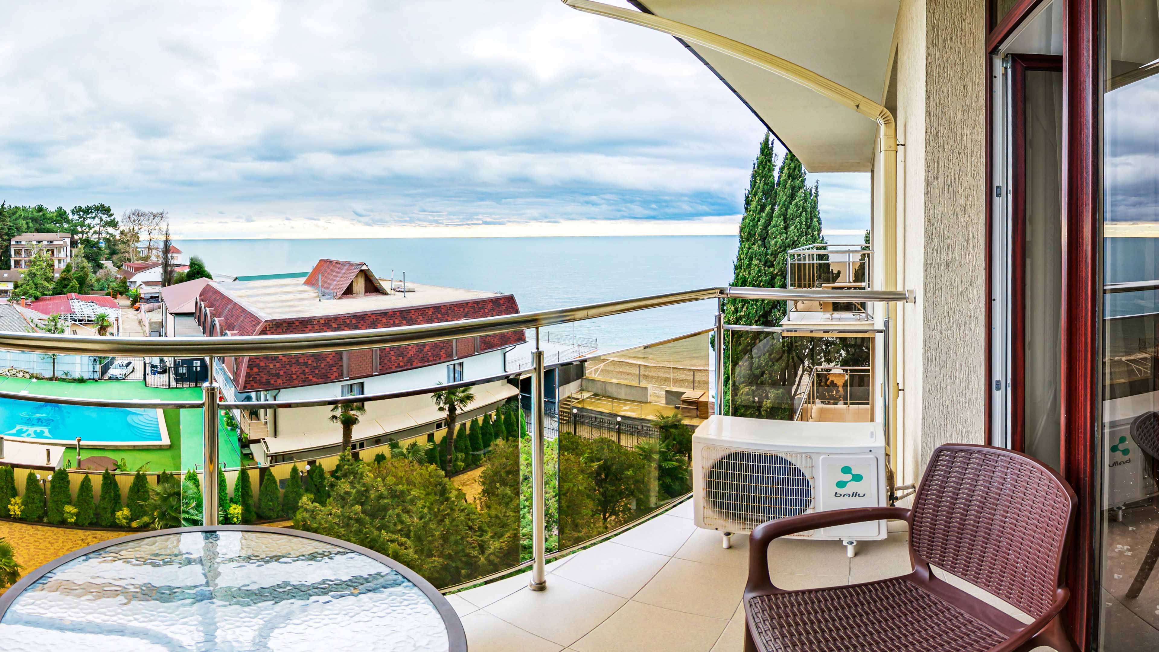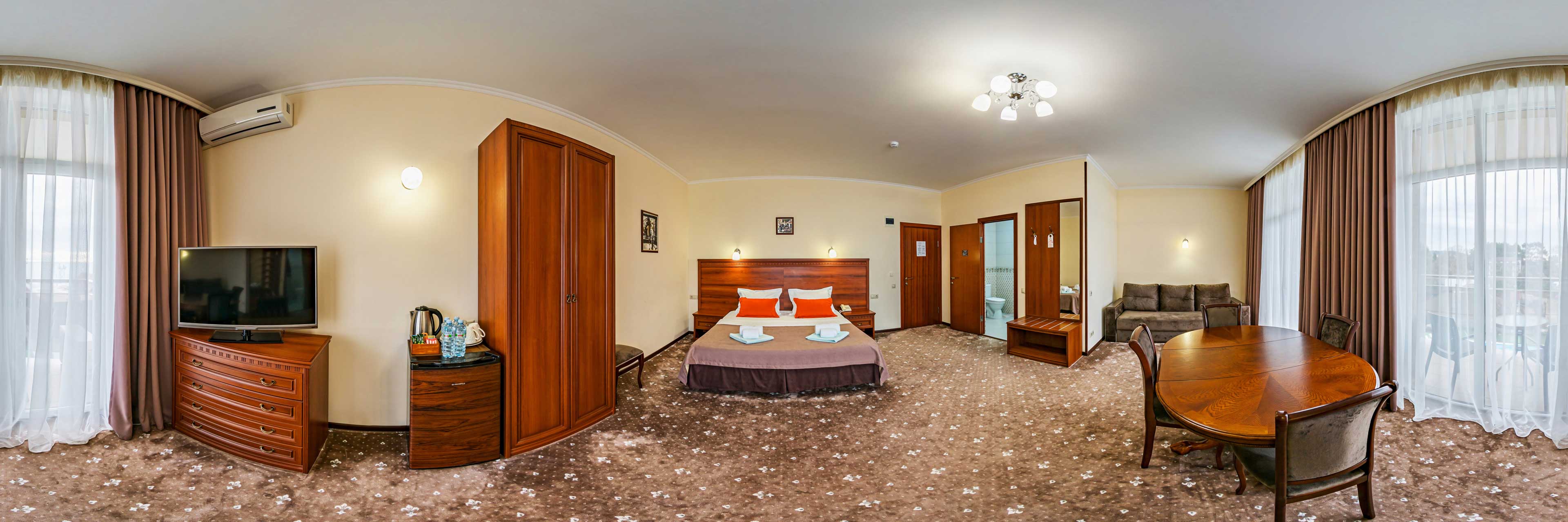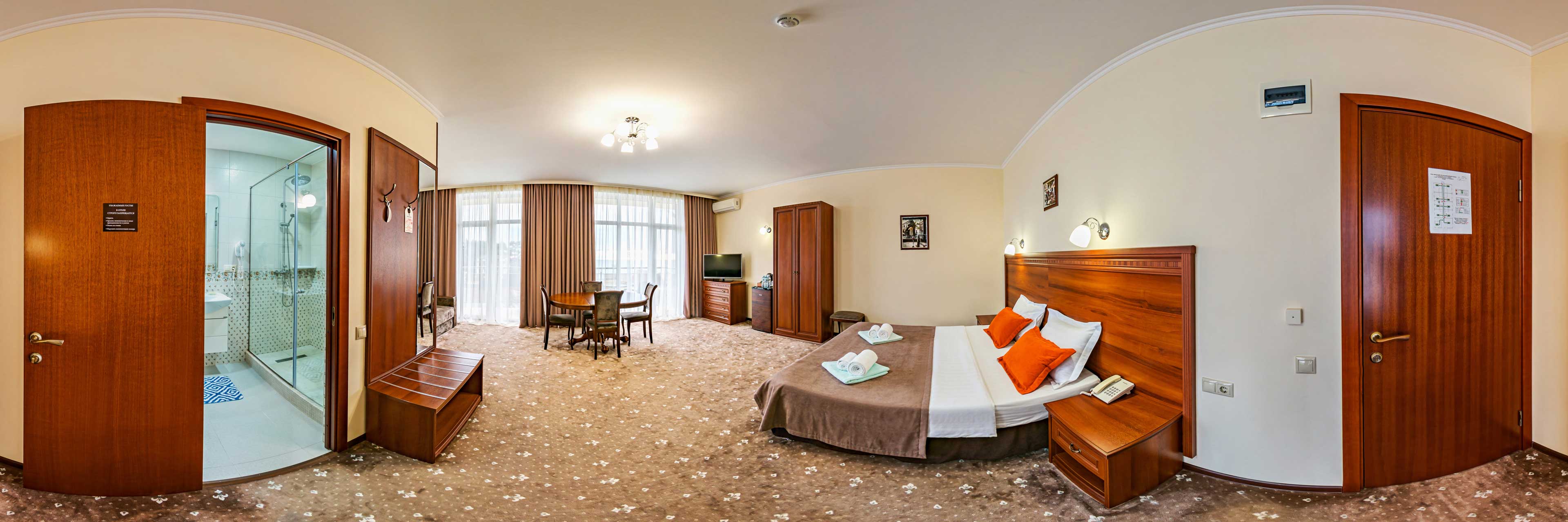 4х-местный «Люкс» однокомнатный» "Боковой вид на море" с балконом 4 этаж (40 кв.м.) - мебель (кровать двухместная, диван раскладной, прикроватные тумбочки, шкаф, тумба, трюмо, балконная мебель) - телевизор - кондиционер - холодильник - чайник + разовый набор при заезде (кофе, чай, сахар, вода) - набор посуды на 4 персоны (тарелки, стаканы, чайные пары, столовые приборы, штопор) - сейф - санузел (душ/ванна), фен, полотенца, ванные аксессуары, халаты и тапочки, сушилка для белья. - балкон по желанию в номер может быть установлена дополнительная кровать для ребёнка или взрослого (оплачивается по дополнительному тарифу) |