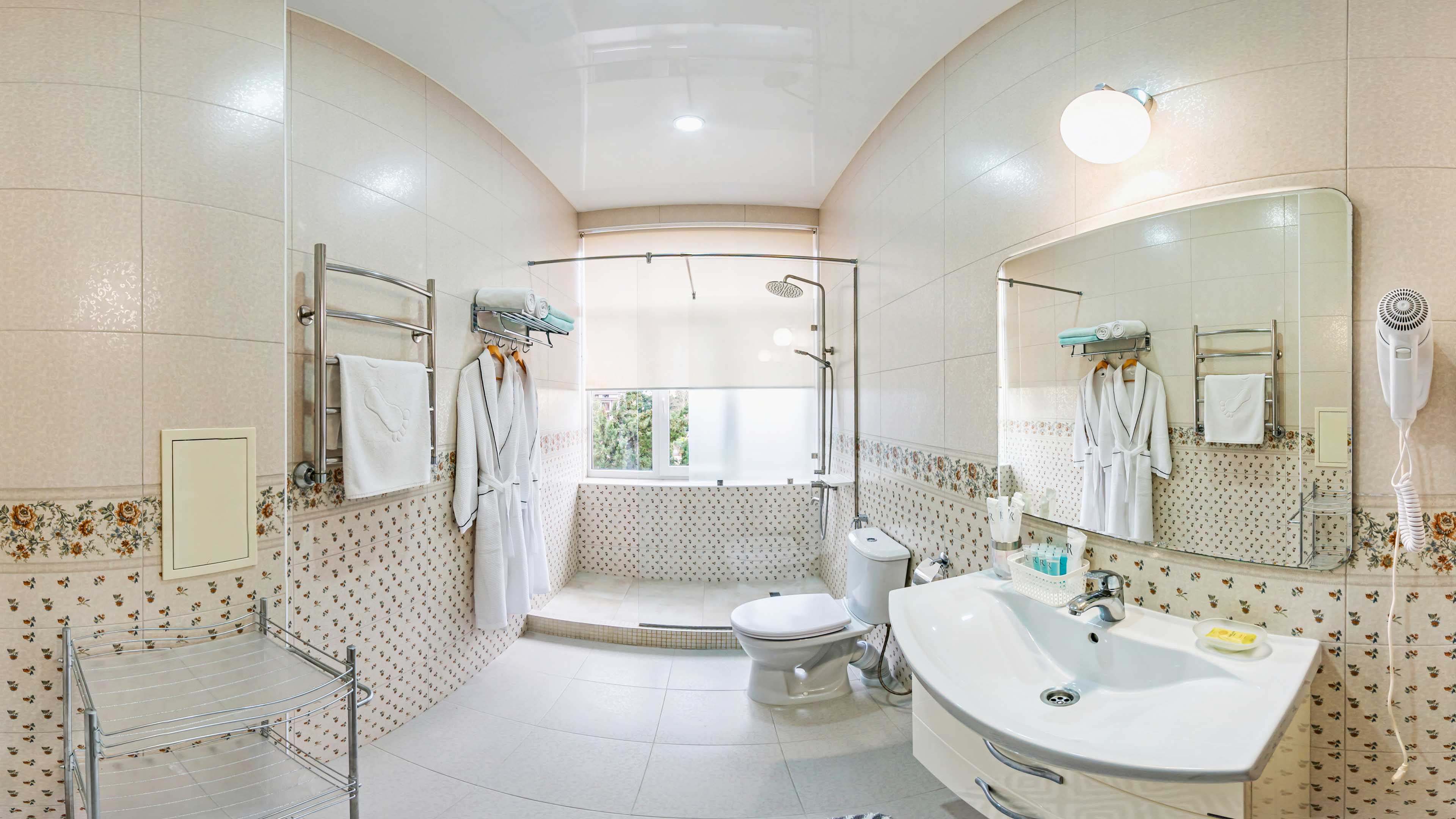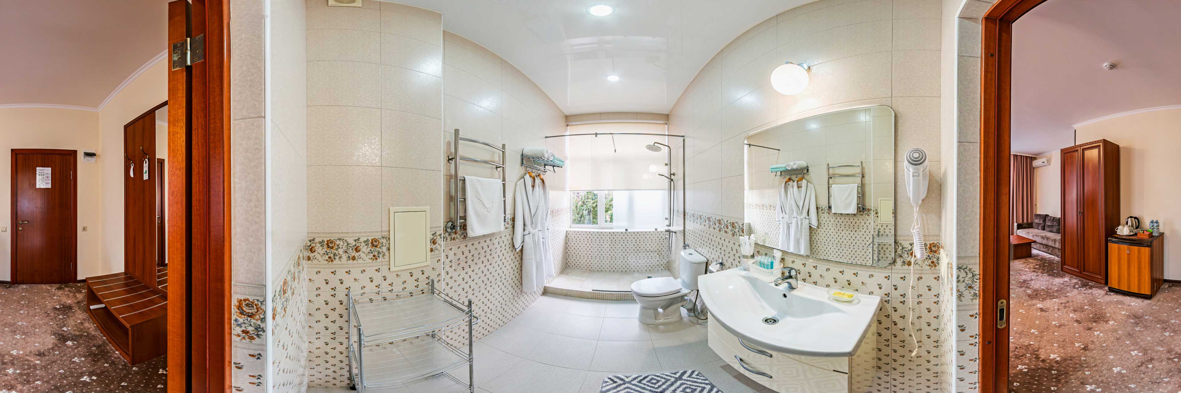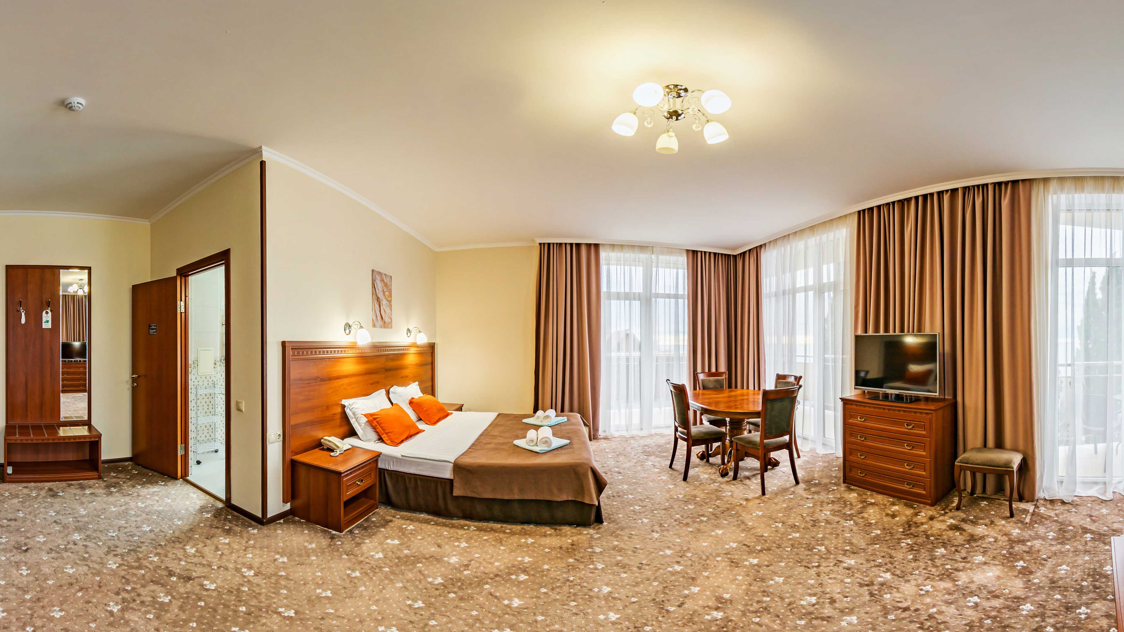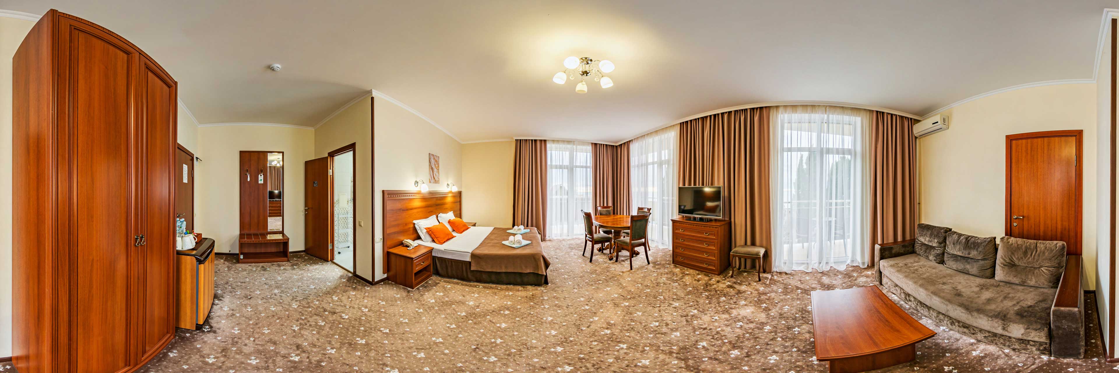 4х-местный «Люкс» » "Вид на Море"» 4 с балконом 4-5 этаж (40 кв.м.)» - мебель (кровать двухместная, диван раскладной, прикроватные тумбочки, шкаф, тумба, трюмо, балконная мебель) - телевизор - кондиционер - холодильник - чайник + разовый набор при заезде (кофе, чай, сахар, вода) - набор посуды на 4 персоны (тарелки, стаканы, чайные пары, столовые приборы, штопор) - сейф - санузел (душ/ванна), фен, полотенца, ванные аксессуары, халаты и тапочки, сушилка для белья. - балкон по желанию в номер может быть установлена дополнительная кровать для ребёнка или взрослого (оплачивается по дополнительному тарифу) |