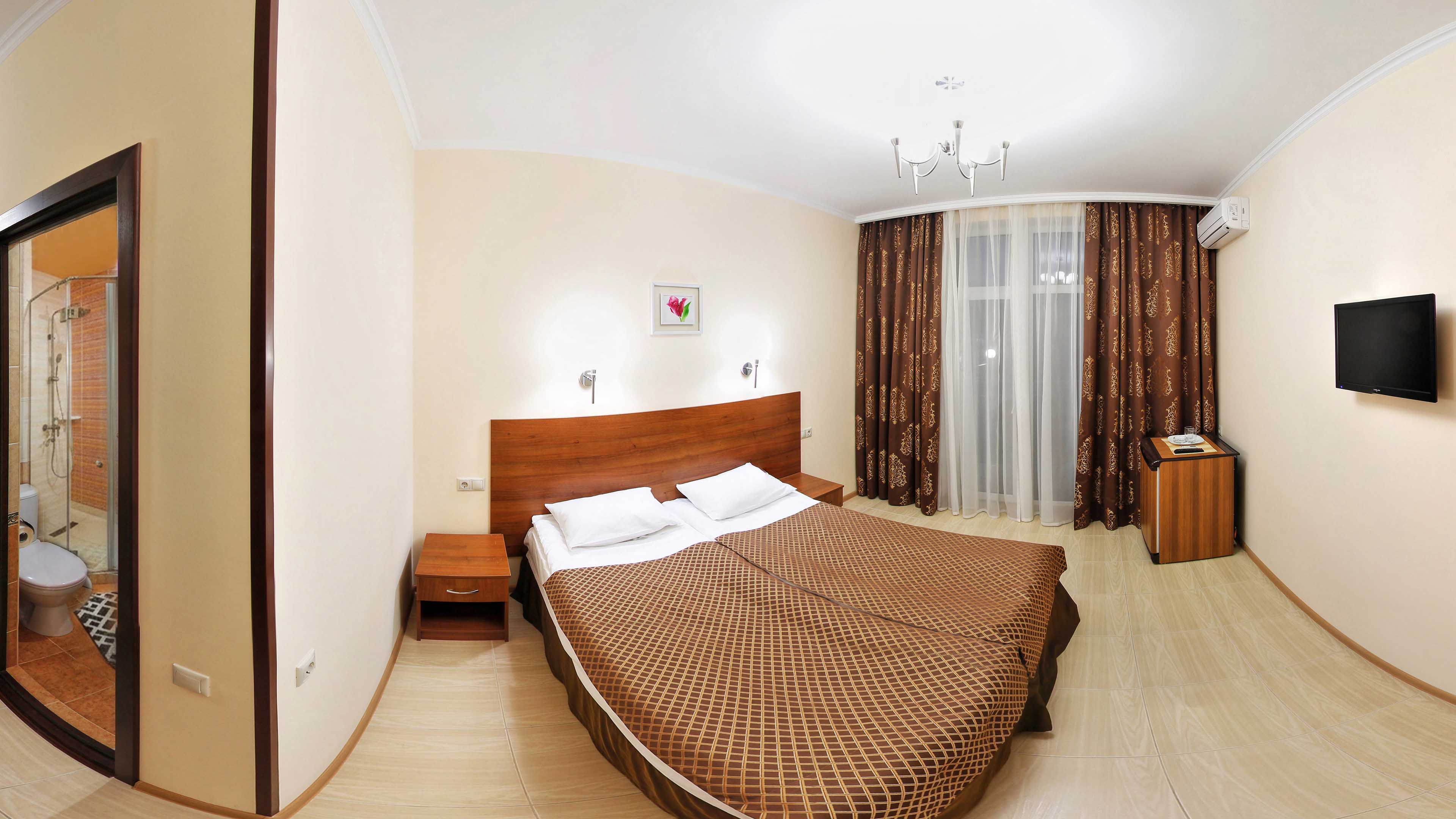2х-местный однокомнатный "Без определенного вида" с балконом 1-2 этаж (20 кв.м.) В каждом номере: - мебель (кровати две одноместные/одна двухместная, прикроватные тумбочки, шкаф, балконная мебель) - телевизор - кондиционер - холодильник - посуда (тарелка, стаканы) - сейф - санузел: душевая кабина стационарная или со шторой, фен, полотенца, сушилка для белья - балкон по желанию в номер может быть установлена дополнительная кровать для ребёнка или взрослого (оплачивается по дополнительному тарифу) |
