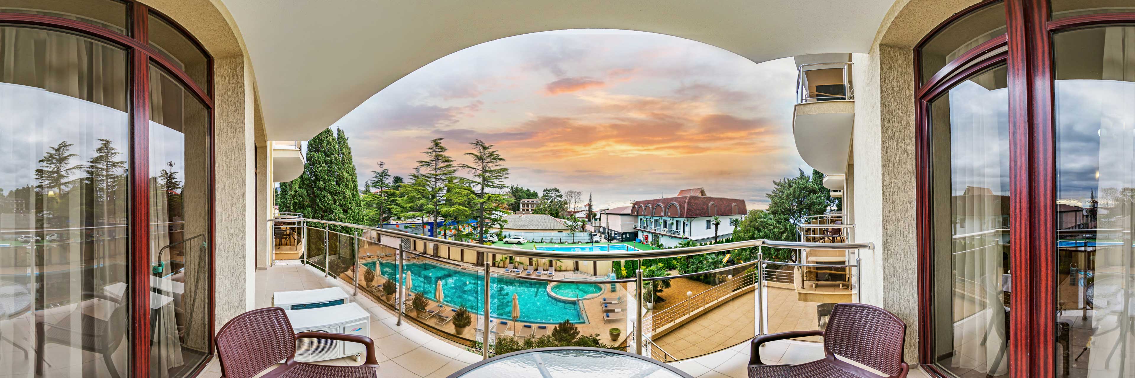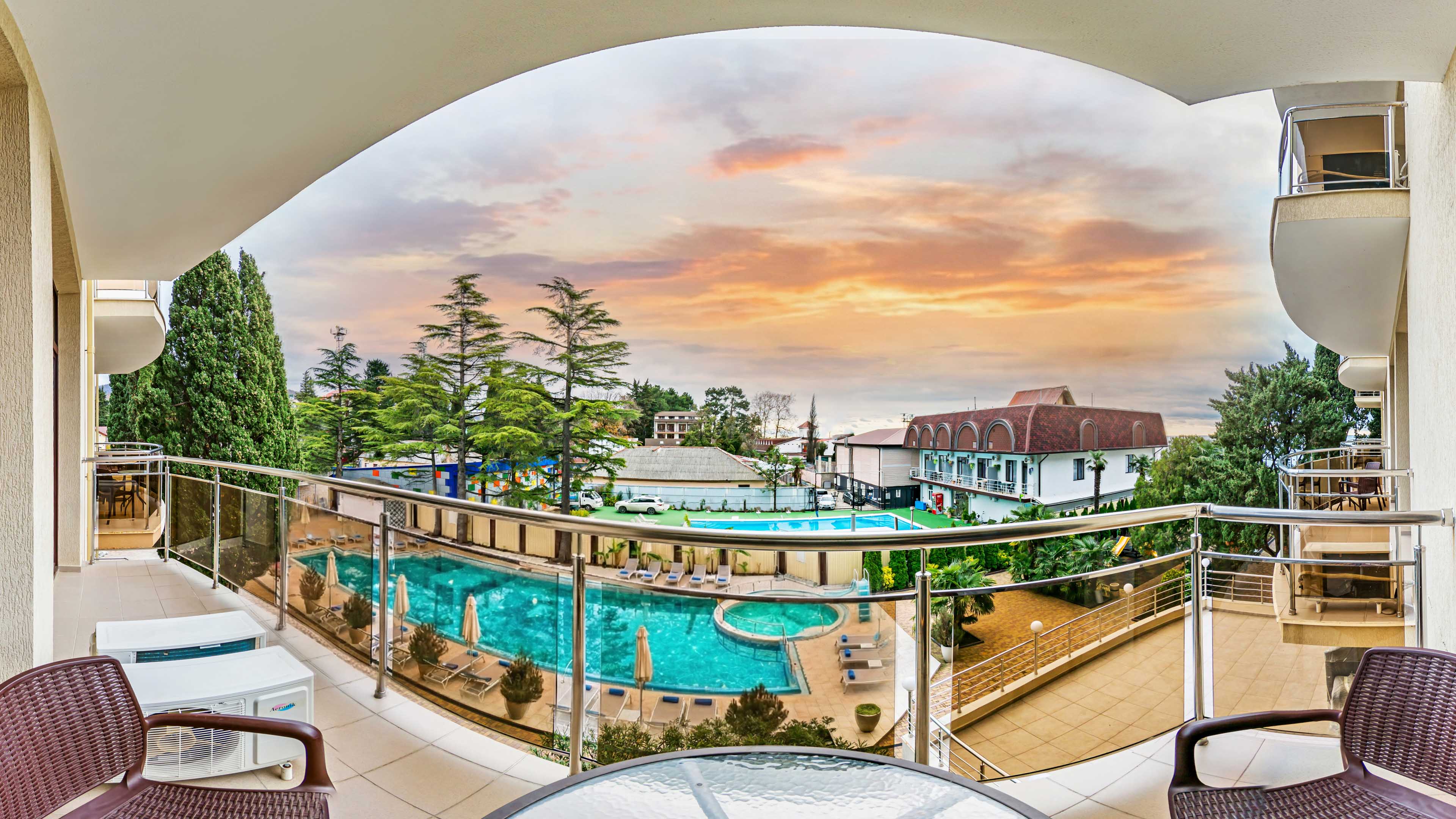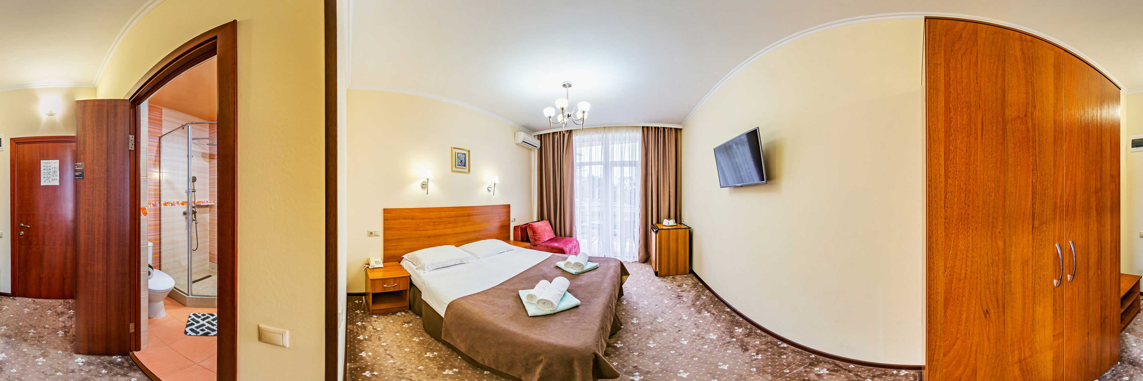 3х-местный однокомнатный "Вид на Бассейн" с балконом 3 этаж (22 кв.м.) В каждом номере: - мебель (кровати две одноместные/одна двухместная, прикроватные тумбочки, шкаф, балконная мебель) - телевизор - кондиционер - холодильник - посуда (тарелка, стаканы) - сейф - санузел, фен, полотенца, сушилка для белья - балкон по желанию в номер может быть установлена дополнительная кровать для ребёнка или взрослого (оплачивается по дополнительному тарифу) |